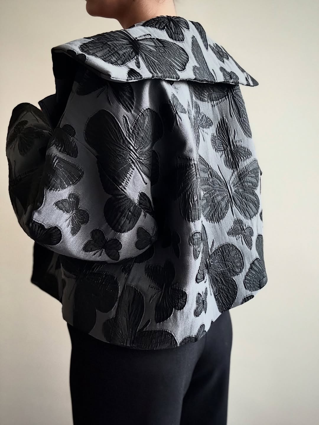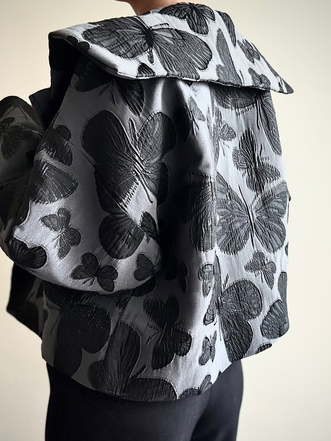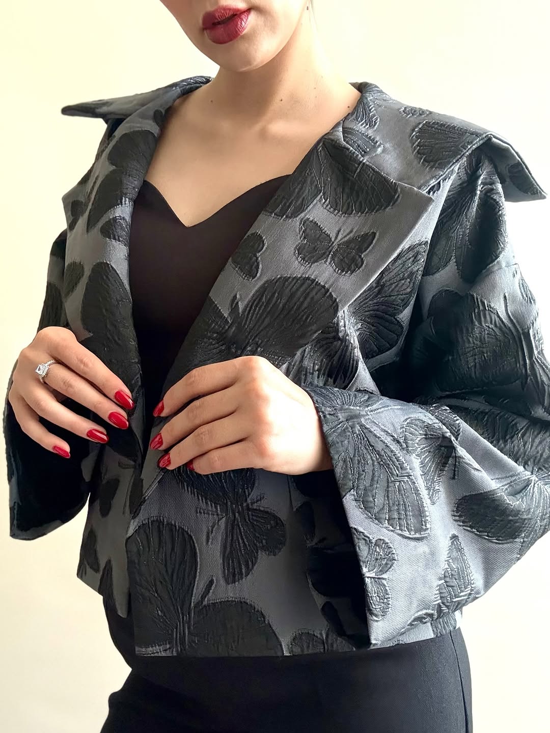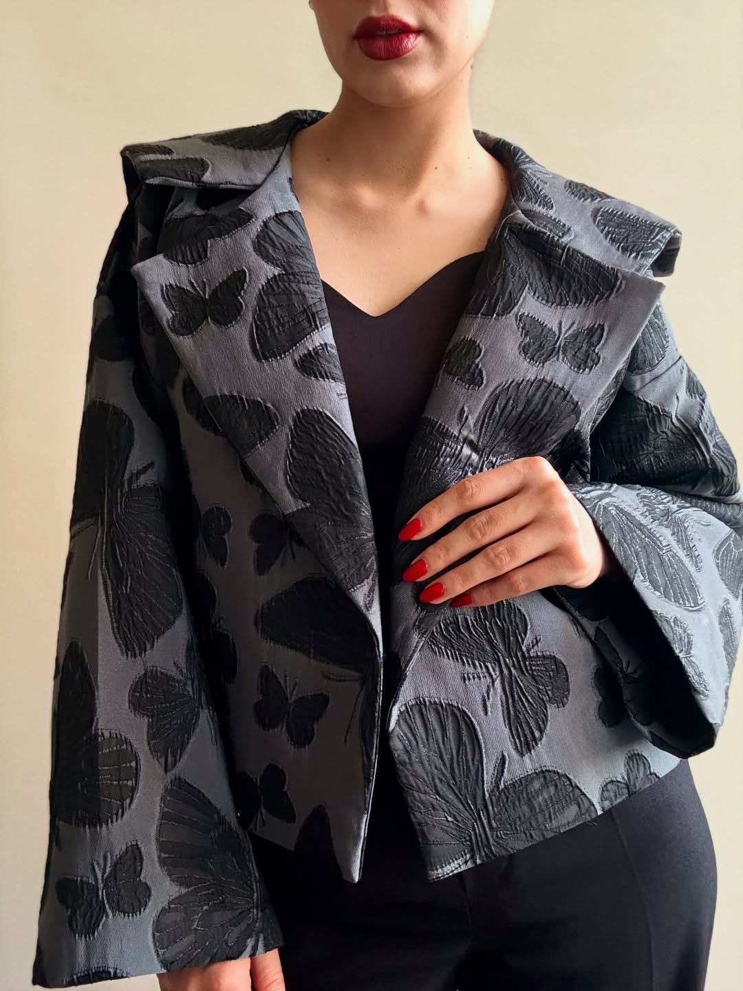 کُت با بافت برجسته پروانهها و برش آزاد و کوتاه که یک استایل خاص برای وقتایی که میخوای متفاوت دیده بشی.